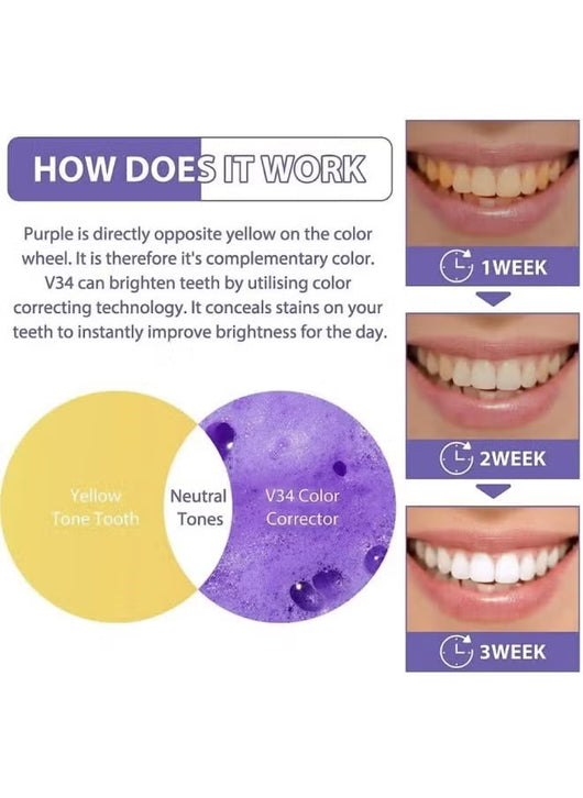 - Purple Toothpaste: Purple is the opposite of yellow on the color wheel. It penetrates deep into the enamel pores and undergoes a redox reaction with lutein, gradually breaking down tooth stains, eliminating the yellow, revealing a brighter white tone